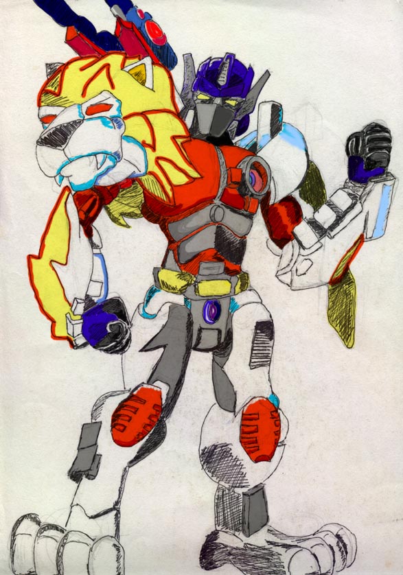 I finally got around to finish coloring Lio Convoy. I did it on Adobe photoshop. I think he came out pretty well....yes.