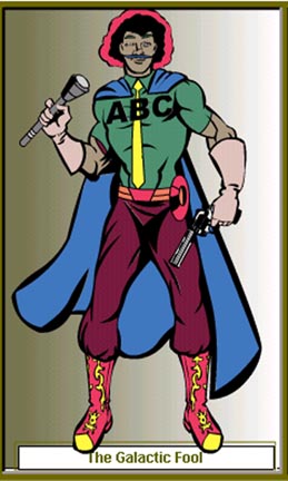 The Galactic Fool; the greatest super-hero this side of the Mississippi. Even though the Galactic Fool is not a drawing; he is still one of my creations. I made the Galactic Fool on www.heromachine.com It's a pretty cool place (even though I recomend having a fast connection like a cable modem.) or you just won't get very far. |
