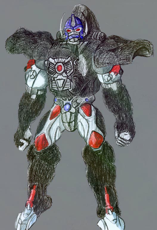 Name: Primalizer Allegiance: Vok Function: Vok destroyer Beast mode: Gorilla Motto: "All will be destroyed, all will suffer, and justice will be served." After the Vok emissary Tigerhawk was destroyed on Nexus Earth, the Vok began their original agenda to destroy all of the invaders who disrupted their experiments and created Primalizer.Built from the remains of the first Optimus Primal salvaged in deep space he is nearly indestructible and has enough firepower to decimate an army of Maximals or Predacons.A form of energy called negative energon, which the Vok supply him with, gives Primalizer the strength and firepower he needs to do the job.Primalizer's attack style is deadly and savage, rarely will he think rationally in combat but has an intellectual side. Weakness: Though he has much strength; Primalizer has a low tolerance to large doses of cyber-venom and can be taken down quickly if shot several times with it. Also if Primalizer's monthly supply of negative energon can be located and stolen Primalizer will not have the strength he needs for combat and will most often go into hiding until his next shipment. Because the energon is negatively charged, it restricts Primalizer from becoming transmetal, but because of the energon's immense power it more than makes up for it. However if any Maximal or Predacon uses the negative energon their circuits will be seriously damaged by it. In spite of a few weaknesses, Primalizer is an awesome menace and is capable of destroying both sides. Strength: 10+ Intelligence: 9.9 Speed: 10+ Endurance: 10+ Rank: 10 Courage: 10 Firepower: 10++