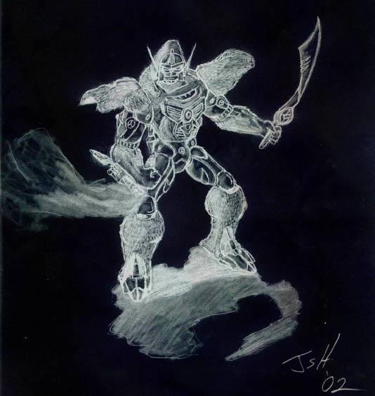 This is a pencil drawing of Primalizer....or Optimus Primal. I was soo happy the way this drawing came out. I think I really made the charactor look like a visous killer. Anyone who watched Beast Wars knew that Optimus Primal was not such a maniac...Except for one episode, Gurilla Warfare, The episode when Optimus was infected by a virus, turning him into an uncontrolable war-machine. And that episode is what spawned my vision of Primalizer.