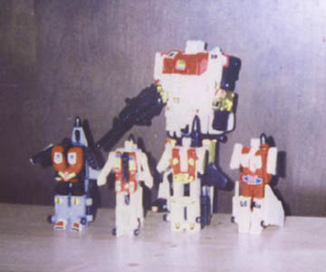 Spa-bot is identicle to the original G1 Superion, in paint job. Even Silverbolt's gold chrome. Their are Autobot stickers applied on every Airialbot even though this bootleg doesn't even have the Transformers logo anywhere. The rest of the stickers are accurate to the original Airialbots as well, but they are poorly applied to the figures. Spa-bot comes with two hands, feet, chestplate, pelvis, and Silverbolts gun. None of the other Airialbots have weapons. Spa-bot's plastic is CRAP. The plastic is HORRIBLE. So far I haven't broken any of the members of the set yet, if you do open this set just be aware that Spa-bot is not a toy that will last ten or so years....or at least I seriously doubt it.