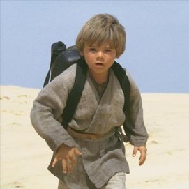 Anakin's story begins, oddly enough, in Episode 1, where he is a small boy with a large head. Rescued from slavery in a sand-pit, he goes off to become a Jedi.