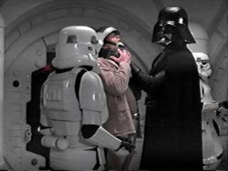After a mishap with a volcano, little orphan Ani gets a suit of black armour and a swishy cloak. He is become Darth, Bringer of Badness. He kills lots and lots of people, including Ee-wan. Finally he himself is killed by the Evil Emperor, in a redemption-type-plotline.