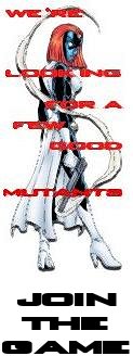 Once again, original characters will not be accepted if they are submitted by non-officer players. Please type your information into the form boxes below, select and copy the boxes, and paste them into the email link that appears when you hit the submit button. We at Next X apologize for the clumsiness of this process, but until our webmasters can find workable CGI scripts this is how we have to do it. Thanks for your patience. NAME EMAIL ADDRESS DESIRED CHARACTER