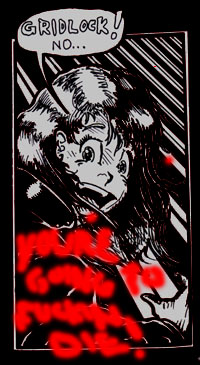 THIS IS A PANEL SCENE FROM THE VERY FIRST ISSUE OF THE WORLD'S DEADLIEST WARRIORS MINI-SERIES! IN THIS ISSUE: TWO REBELS (ONE, HUMAN, THE OTHER ALIEN) RUN FOR THIER OWN LIVES WHILE BEING ATTACKED BY HARGIII ALONE. ONE IS STOPPED, THE OTHER IS CAPTURED AND SLAVED AS A LINK TO HELP HIS EVIL CLAN BE BORN... ONE IS A FRIEND OF GIDEON'S PAST, THERE FOR HE FEELS HE MUST GO AND RESCUE HER AND STOP HARGIII FROM ALL OF HIS EVIL PLANNING... THIS VERY ISSUE ITSELF SHOULD BE A BLAST FOR ANIME FIENDS WHO JUST CAN'T GET ENOUGH MANGA-STYLE ACTION AND EXCITEMENT, THIS BOOK WE ALL PROMISE NOT TO LET YOU ALL DOWN... FOR ALL SCIFI ACTION LOVERS, GIVE THIS ONE A SHOT, I'M PRETTY SURE YOU MAY FIND THIS ONE TO BE YOUR CUP OF TEA! ALSO: LOOK FOR MORE AND MORE PHANTASY WARRIORS-RELATED PHOTOS AND OTHER OUT OF THIS REALM WICKED STUFF FROM YOUR'S TRUELY...ANTJUAN "THA PHANTOM LORD OF ILLUSIONS" COLEMAN. |