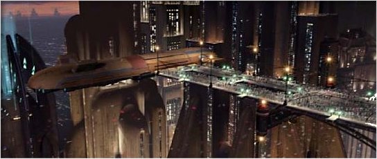 Aside from the dangers of living in a city as populous as Coruscant, the mere amount of energy consumed by Coruscant per day because of its size creates dangerous pollution levels. All citizens who step out into the open must be careful and wear protective clothing against the pollution. Fortunately, nearly every building, of the millions of buildings on Coruscant, is linked together by walkways and passages, so that only the most important tasks will take people out into the smoke. Yet for all the problems with Coruscant, it has many beautiful parts to it as well. The city is well designed, and each building reaches to the heavens.