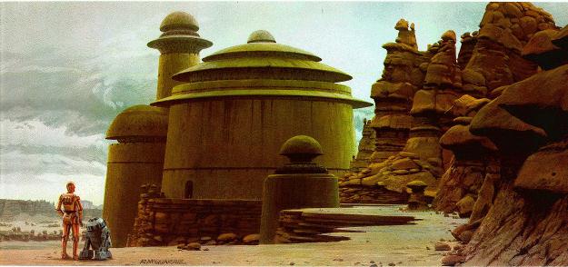 Many centuries ago, exiled monks of the B'omarr order built what was then a huge monastery on the edge of the Dune Sea. The bandit Alkhara took up residence in part of the monastery and remained there for 34 years, raiding nearby moisture farms while expanding and improving the citadel. The B'omarr monastery was the home of many other gangsters and bandits until eventually becoming the palace of Jabba the Hutt, who has expanded the stronghold to encompass a hangar for his ships and Sail Barge and repair facility.
