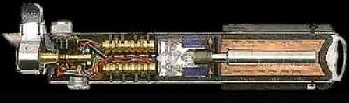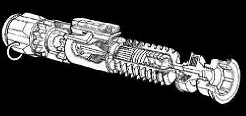 Once unleashed, the power channels through a positively charged continuous energy lens at the centre of the handle. The beam then arcs circumferentially back to a negatively charged high energy flux aperture. A superconductor transfers the power from the flux aperture to the power cell. As a result, a lightsaber only expends power when its blade cuts through something. So efficient is the blade, that it does not radiate heat unless it comes into contact with something.