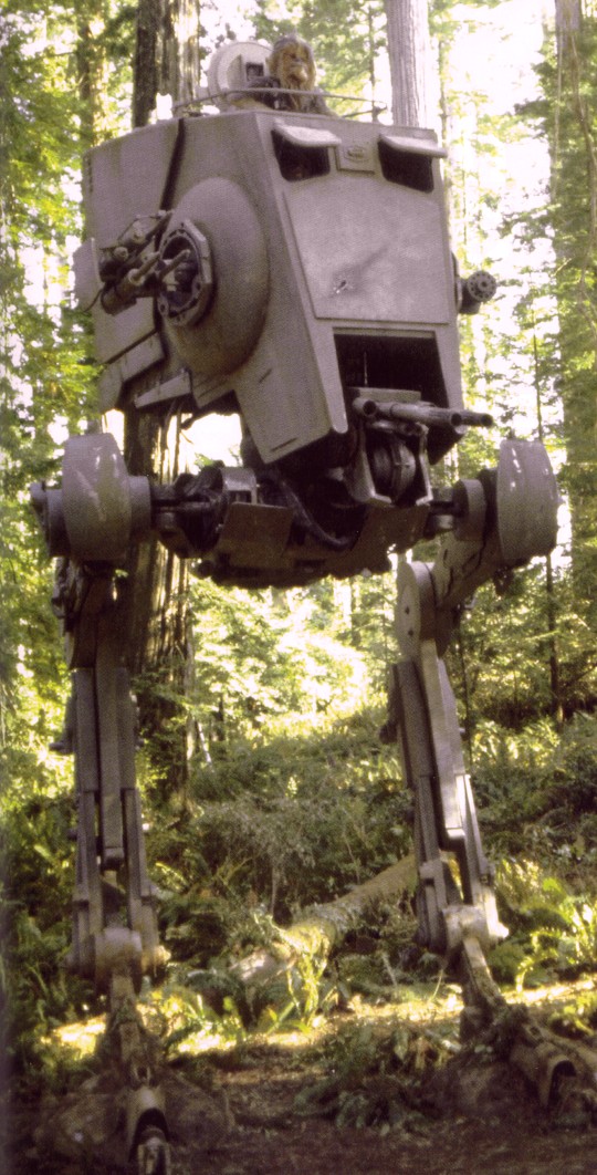 The only identifible AT-ST on Endor is the on that Chewie and the Ewoks conquer. It's got a scar on the front of it. I presume it was so we sharp-eyed folks would know that the AT-ST that causes Han to surrender was actually the one that Chewie was driving. Well, I first saw it when I was three and it slipped by me then, but eventually I noticed it. Also, the commander of that AT-ST (and the one used for the action figure picture) was the director, the late Richard Marquand.
