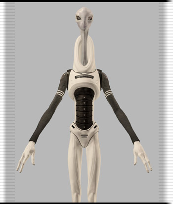 Two background types of generic Kaminoans were made for Clones This one a modification of Lama Su, and the other one with a unique outfit, which I cannot make :) I also couldn't quite get the waist right, which is really the fault of how the fiugre is put together - removing the skirt left a huge gap.