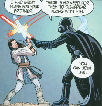 Ok, maybe this will finally make a few of my detractors happy - My Jedi Leia that was almost definatly Corran Horn, is finally no more. Of course, I didn't use any Sculpy, I stayed within the SW line for parts, and I didn't use any brushes to paint, so I guess not. Oh well. In any case, in Infinities for some reason Yoda has Leia dress up in traditional Jedi clothes for her training, and it makes for a pretty cool figure. I actually felt that the premise for the ESB series of Infinities was a bit lacking - I'd've had the change in storyline be Luke either joinign Vader or dying in the duel with him - not him dying on Hoth. Especially since the premise of the ANH Infinites had Han on Degobah getting Jedi training. I guess it's Chewbacca's turn in the RotJ storyline :) Ooh, I just noticed - two rants in one page - rare form today!