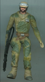 When I make my army builders, I try and make them look like the extras used in the films themselves. Major Turgis, however, is one of the "just offscreen" types of army builders. He's based off of one of the Rebel Commandos in RotJ who had a full, black beard, however that trooper also had a trench coat on. I had to trench coat to give him though, but I suppose I will if I ever wind up with one to spare.