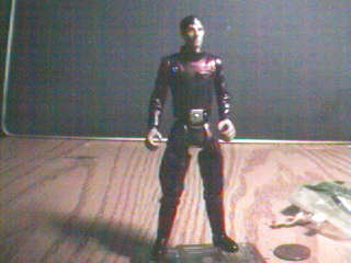A realized that the Republic pilots in the begining of Phantom are wearing uniforms identical to those of the Empire, only they're blue and don't have any rank insignia (nice job Lucas! Nice eyes me!) The co-pilot also has a Tarkin-ish face, so I sanded down his rank badge, painted his uniform blue, and gave him that funky bowl cut.