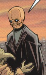 There's actually two Bith Jedi's in the series, and the other one is coming soon. The orange belt may seem a bit wierd, but in the only full body shot of the Jedi, that's what he's wearing. I know it clashes with the rest of the outfit, but hey, I didn't draw the comic. Besides, it matches his lightsaber blade :)
