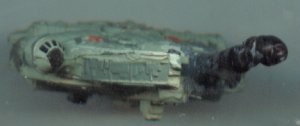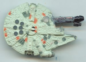 Boy, this lightning gun was a pain to make. It's actually the neck from a Romulan Warbird (sacrillage!) severely cut down, and very detailed. The detailing (except for the end bulbs) are just drawn on, but look good unless your right up close. The rest of the ship was easy after the gun was made - just lop off a mandible and the radar dish and it was ready to go.