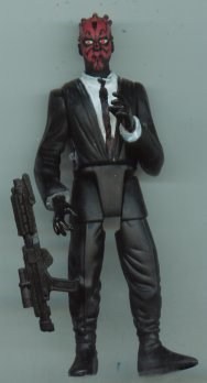 I usually don't do customs of other people's fan fiction, basically due to the fact that there's just so much out there I could backrupt myself. I love Pulp Phantom, however, so I figured I'd do a custom of Maul. The suit is Figrin D'an torso and legs, Barquin D'an arms, X-Wing Luke hands, and of course, Maul head. He used his double saber in the shorts, but also used a Stormtrooper rifle so I gave him that as an accessory instead. I may do his partner, Boba Fett, later on.