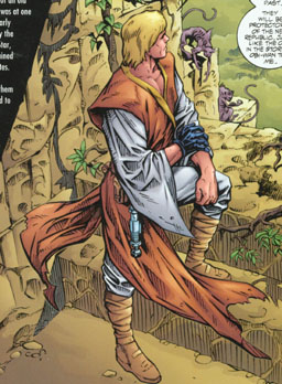 I'm not totally happy with this one, but what can you do? Luke's Jedi outfit was very, very close to what a prequel-era one looks like, but alas it seems it was off enough to be noticable. I also used a web reference, though I do own the comic book, and it turns out it was mirrored for some reason, so now my custom is also backwards. Aye aye aye. Lastly the orange pigment in the marker I used seems to travel quite a bit, even after it's dry. Not good when the only other color on the figure is white. It looks like I handled him after eating a bag of cheese puffs - I'm sure all you scalpers out there know what I'm talking about ;)