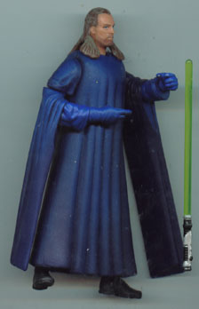 The best part about making this custom was that it allowed me to get rid of some parts I had no use for. Under the blue cloak is a Tessek body (from my silly Stormtrooper Monk) and the Labria legs from my unbelievably atrocious Cruisemissle Trooper (what was I thinking!?)