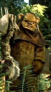 Salina is one of the lucky Ewoks who's immortalized in a publicity still. At first I thought his hood was red, but I changed my mind and made it reddish brown instead.