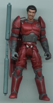 This is another custom that I had had in mind to do even before I started customizing in the first place. They made a Luke as a Coruscant Guard, I don't see why they didn't make a Lando - all they needed ot do was switch the head (which is what I did to him.) Interestingly, although described as wearing this in the book, Lando is wearing a different outfit in the comic - seen here.