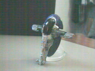 I streched with this one - as the Slave IV is never described in the novel at all. The cover shows the Slave 1 on it, and I doubt that Fett would use a clone ship. I used a pewter ship, and added blue markings. At least it looks cool.