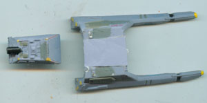 I wanted to do a pod-seperating version of the Surak, but since up until now, my Star Trek customs were from my very early days, and I wasn't sure how to do it correctly. The correct way was just using a very fine blade, and ot move as slowly as possible to get a clean cut. I then painted the exposed edges with paint that I knew would dry tacky, so now the pod sticks to the warp sled.