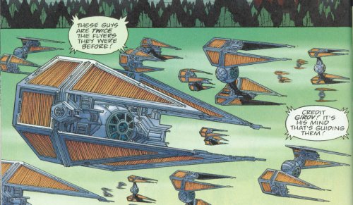 How this guy got so many ships is beyond me, but a former Imperial mechanic turned wannabe Sith Lord had a million of em to unleash on the Rogues. I guess it was artisic licence, but the gold solar panels would reflect light, not making for a very effective energy collector.