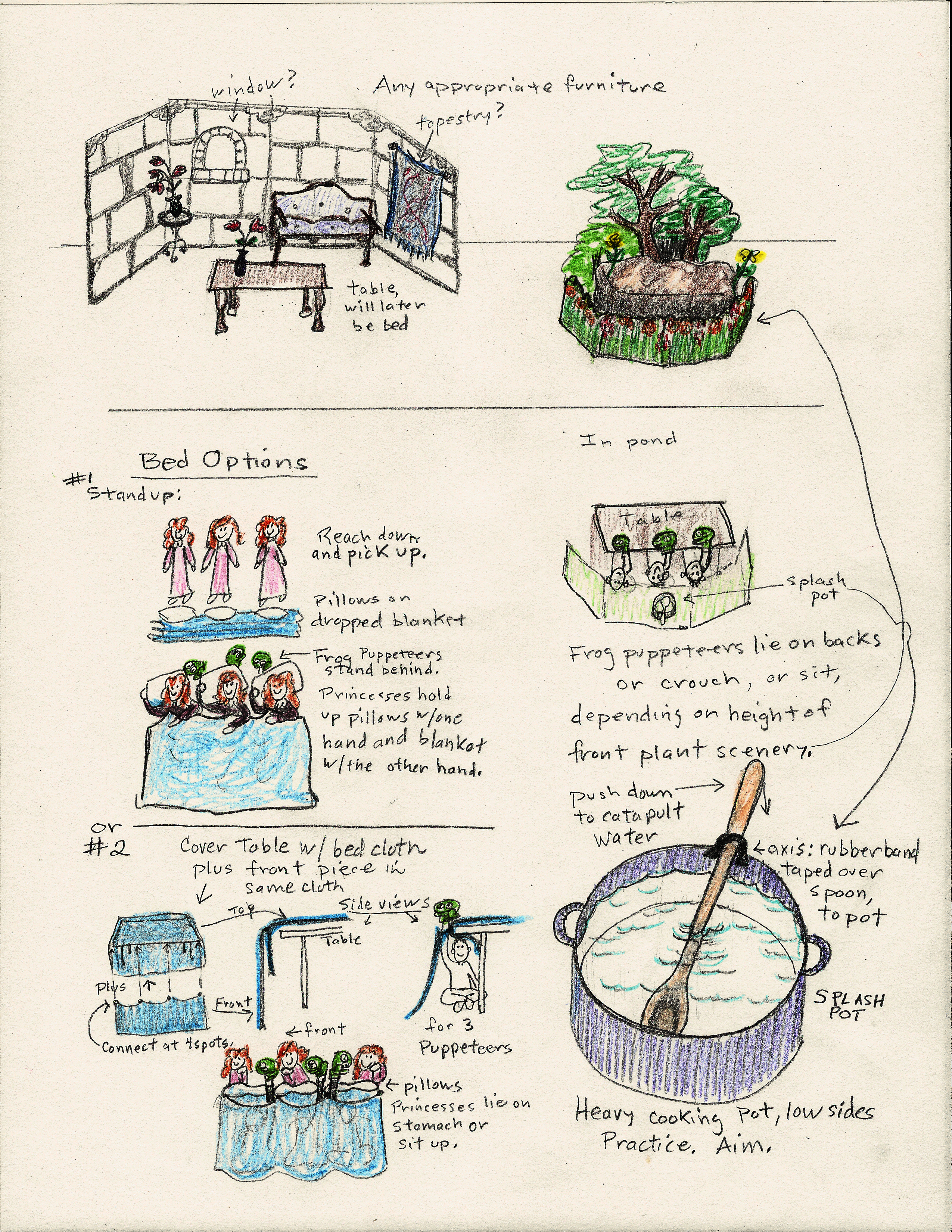 Stage Drawings for The Frog Prince and the Princess Brats, Jr.