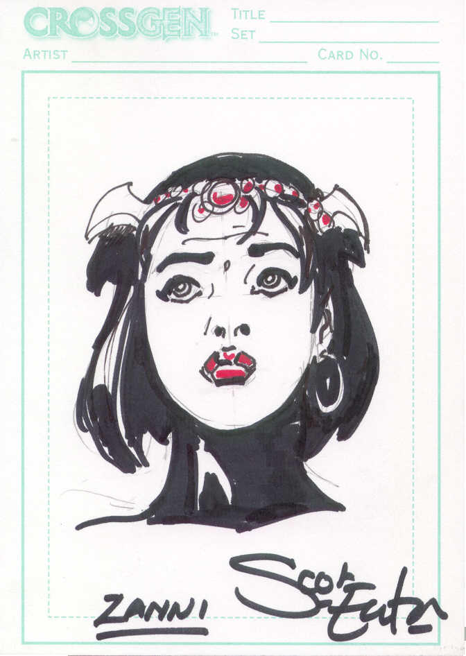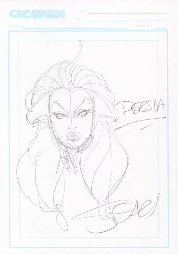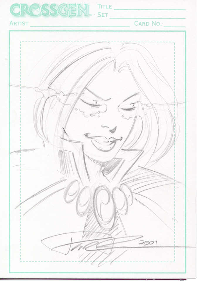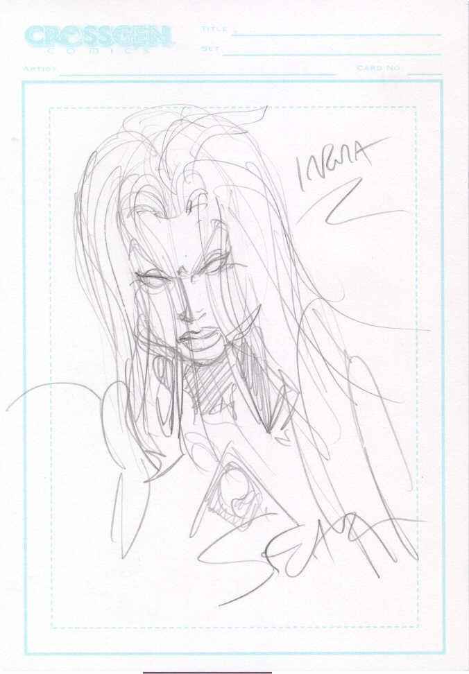 Wraith wanted to challenge our artists with each sketch he got, and Steve was well up for it. Wraith's direction was a wet-haired Sephie with a glowing palm. This is also signed by Beeber (see below)