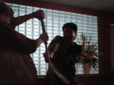 | Unfortunately for the rednecks, Parker his there, and a blind samurai is more than a match for three guys with guns, even though the main redneck, Slag, is invincible, and can survive several sword hits to the chest without feeling a thing. It turns out that Devereaux is now a chemical engineer who was very, very, very bad a gambling in Reno, so in order to pay off his debt to a mob boss, he has to manufacture designer drugs. So Parker and the kid go on a trip to Reno, where they can rescue Devereaux and defeat the mob boss. This trip is full of attacks from a seemingly endless army of rednecks. The climax features a very funny and well done fight between Parker and a Japanese assassin armed with a huge katana. Luckily, Parker's has managed to conceal a very sharp sword inside of his blind man's walking stick. How convenient. |