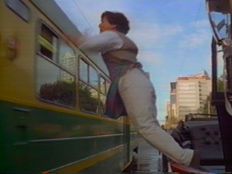 | As just about all of us know from the publicity for "Rumble in the Bronx", Jackie does all of his own stunts, and what stunts they are! Of course, the movie isn't very serious either. It seems to focus on physical comedy, and really quick jokes. The other amazing thing about Jackie Chan is that any one of the several thousand tiny stunts that he accomplishes in this movie is well beyond my physical ability, and probably yours too. Of course, Jackie is able to use a ton of energy on a throwaway stunt, such as that one with the moving bus on the left, and could probably still power a city using a human-sized hamster wheel. What is the plot? Well, it's something about a drug war, and two rival gangs who both want an incriminating video tape, or something like that. Jackie plays the ultimate TV chef, sort of a "Yan Can Kick Ass". |