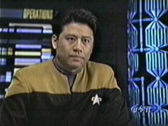 But, alas, he's just an ensign and so isn't allowed to have a steady relationship. Because of this sad fact, his lover leaves the ship with her new family, the one she got after she was raised from the dead.....