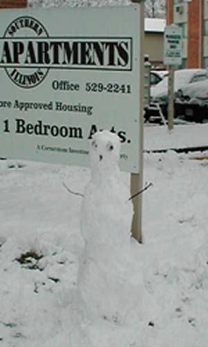 My very first snowman outside my very first apartment!