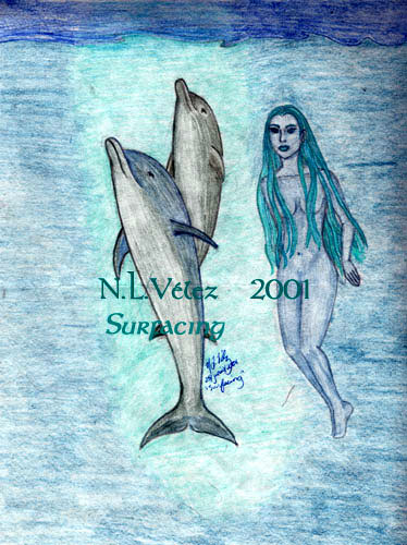 For the Bifrost World of Water project. Sea nymph rising up to the surface with her dolphin companions. It didn't come out like I planned, the colors are very dark and the picture has a grainy look it isn't supposed to have. I might redo this.