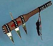 The knife blades and long nails are sometimes mounted into clubs. The blades, of course, may also be fitted into carved handles of wood and bone.