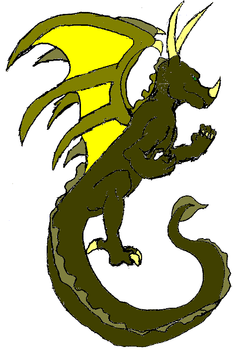 Physical Description: Derill Banetail is a 'dragon-kin', one of the only ones in the known world. Dragon-kin, which can live to be over 450 years old, look much like tall humanoids, except all of their features are those of dragons. Dragon-kin even have wings, claws, scales, and tails, just like dragons. Derill's scale color is a dark brass-like tone, and he has three extra horns, two on top of his head that are much like bull horns, and one on his nose that looks like a rhino horn. It is rumored that he can breathe fire, but this rumor is false; he instead has the capability to breathe ice.