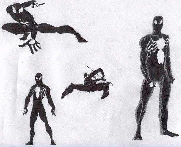 --Spiderman-- This is Spidey in his black alien costume. I'm just too lazy to draw all those little black lines in his red and blue get-up. The scan turned out horrible though.