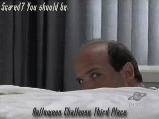 And in the corner of the room sat Eberts, eyes shut, mouth open and snoring, and a little kid dressed up like Darth Vader sitting in his lap. The scariest part of that picture was the fact that Eberts was dressed like Captain Kirk. And as his eyes wandered to the left, the Fatman sat in a chair, three little kids dressed like a Smurf, an M&M, and a fairy princess were sleeping. A couple of the kids had chocolate smeared across their faces. Hobbes couldn't hold it in any longer and ran upstairs to Monroe's office.