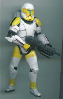 This custom is a little unfinished, but I don't have a visor to give him just yet. I've got a few Clone Commandos on the drawing board, so hopefully it won't be too much longer. In the meantime he can be pre-mission or something :)