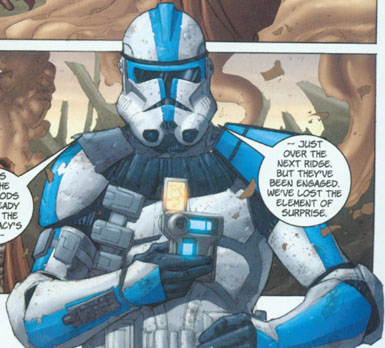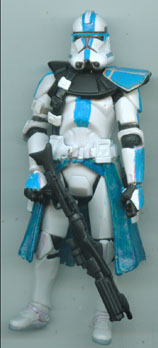 At first I was going to swap armor with my Commander Bly figure, since I wanted Alpha to have a removable helmet, but since they both remove thier helmets, Alpha got the shaft this time. I'm a little surprised that Hasbro didn't make a blue Clone Commander instead of the varient green one, but there's still a chance that this figure might show up officially at some point in the near future. His crest was both painted and non-painted in the comic, and I choose non-painted since every other aspect of his markings match the other Clone Commander markings.