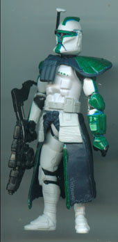 I think it's only a matter of time before we see this guy in a comic book somewhere. Originally I think the ARCs were meant to be in the blue grey markings as a seperate designation. Then the Animated series put them in blue, and ARC Captains in red, just like the normal Clone Captains. They came the yellow ARC Commanders, which I guess makes the blue ARCs Lieutenants. Green Clones seem to keep getting the shaft, but as I had an extra ARC, I figured I'd make a Sergeant ahead of time. He'll show up eventually.