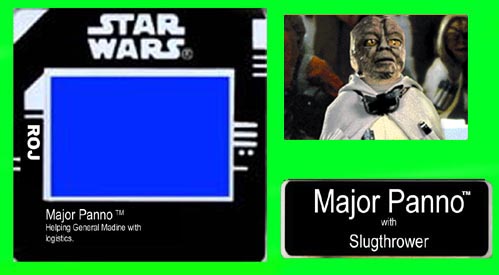 So, back around the time I graduated from college, I had briefly moved back home. While there I decided it might be cool to re-card all my custom figures. I had kept all the packaging and worked out which figures would go in which bubbles (you’ll notice that most of these figures a repaints, and not part swaps.) From there I went the FFURG’s template page and pulled what I needed. I was planning on printing out only the bubble labels and head shots from the front of the cards and printing them on glossy sticker paper. For the freeze frames I planned on printing out the center on transparencies and the text on stickers (which I later did for a custom freeze frame project that I have yet to display on this site, stay tuned…) I wanted to get as many photorealistic images as possible, and a lot of the graphics you’re seeing look pretty rough, since I never went back to clean them up, and a lot of the colors are off, as I was still learning on PhotoShop for the early ones. Ultimately I decided not finish because I decided not to re-card. It was getting to be a lot of work, and I wasn’t even sure if I’d even have room to display it all. I also realized that after I had typed everything up, that I had forgotten to put the text in all caps. You’ll notice that there aren’t any CommTech or PotJ cards shown. I had some planned, but quit before I got that far. The Episode 1 cards also proved to be a bit of a challege, as they’re the only movie specific cards out there, but I used most of my Episode 1 fodders figs to make figures from other movies and the EU. So anyway, here are the images, recently unearthed from an old hard drive that I had meant to hook up to my now year-old “new” computer. A lot are far from finished, and I’m toying with the idea of going back and completing them bit by bit. I don’t know when I’ll find the time for it, but it’s an idea for the future :) As an added bonus, each graphic is linked to the figure it was supposed to be for.