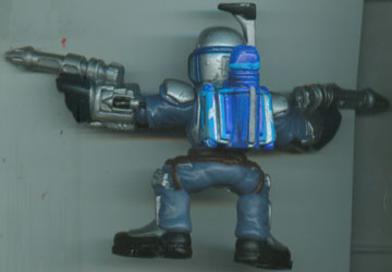 What to do with an extra Galactic Heroes Jango Fett? Well, I thought of making Jaster Mareel, but decided instead to make a figure within the movies. I chopped up and repainted Jango's backpack and was finished.