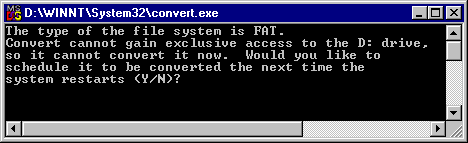 Pro/Server Install Introduction: Windows 2000 installation can be simple and straightforward. Unfortunately, our shared lab environment requires that we take additional steps to ensure that each student derives the maximum benefit from the installation lab. To achieve this end, we have assembled these directions to ensure successful installation. Failure to adhere to these directions will likely result in a disaster of epic proportions Keep in mind that the directions are not a substitute for thought, and as you follow them, you ought to ask your instructor to explain directions that are unclear or are not intuitive. There may be differences in the directions depending on which OS you are installing (Windows 2000 Server or Windows 2000 Pro). The differences will be illustrated clearly. 1) Boot Windows 98 2) Click Start - Shutdown - Restart in MS-DOS Mode 3) When the system reboots, you will see a DOS prompt (c:\>) 4) At this prompt, type the following if you are installing Windows 2000 Pro: cd\w2kpro dir *.exe winnt /s c:\w2kpro if you are installing Windows 2000 Server: cd\w2kserv dir *.exe winnt /s c:\w2kserv 5) Follow the on screen instructions until you are prompted to restart the computer. 6) The computer will reboot and automatically enter the Windows 2000 setup. You will be prompted to "Press Enter to setup Windows 2000" 7) Press the 'F8' key to accept the End User License Agreement (EULA). This lab is licensed for 25 simultaneous copies of Windows 2000 Server and unlimited copies of Windows 2000 Pro. It is important that we do not abuse this license agreement by using the software outside the lab. 8) This step needs to be performed only if another instance of Windows 2000 is present on the machine. If this is NOT the first Windows 2000 install on the machine, then you will be prompted to repair an install. Press 'ESC' key to get the option to install in a different directory. Choose 'Clean Install'. 9) You must now choose the partition that is reserved for your class for the installation. Your answer will be dependent upon which instructor you have for NOS. For example, if you are a student in Dave Clauss's NOS class, you will select the partition labeled 'Clauss'. !!!!!!!!!!DO NOT INSTALL ON THE c:win95 PARTITION!!!!!!!!!! 10) Convert the partition to NTFS - Press 'C' to convert or ESC to change your mind. Setup will now copy files to the correct install folders. The computer will reboot when finished copying. When the computer reboots, it will automatically load your installation of Windows 2000. Upon boot, the computer will convert the file system to NTFS 11) Windows 2000 will now finish setting up. - Click 'Next' when prompted and allow Windows 2000 to detect and install devices. 12) Windows 2000 will prompt you for your Name and Company Name. If you want to get creative here, feel free, otherwise, enter 'Networking Lab' for name and 'TVI' for company. 13) When prompted for your product key, type the following If you are installing Windows 2000 Pro: WC3C6-37C3B-KJXKR-DBXCC-QT878 If you are installing Windows 2000 Server: J6CVM-3GCQ2-PDCB3-WB8XY-C4WMG 14) When prompted for Computer Name, enter the first letter of your instructors name + the TVI Inventory number of the computer (The label can be found on the right hand side of the Dell system). For example, if your instructor is Vargas and the blue inventory label reads 738715, enter V738715 for Computer Name For the password, enter the semester and four-digit year in lowercase letters. Computers that do not conform to this standard WILL BE ERASED For example, if you are taking NOS in the fall of 2001 enter 'fall2001' as your password. 15) If you are prompted for components to install (Windows 2000 Server), deselect IIS and Indexing Service. Leave all other settings unchanged and click 'next'. 16) Set Time Zone to Mountain. If this is a server install, select 5 as the number of client connections 17) Next, you will configure the network. Select 'Typical Settings' (This option includes Client for Microsoft Networks, TCP/IP, and File and Printer Sharing). 18) When prompted for Workgroup or Computer Domain, Select, "No, this computer is not on the network, or is on a network without a domain controller. Enter TVINORTH as your workgroup. 19) If you are installing Windows 2000 Server, do the following: Wait while setup finishes installing. - Click finish when prompted. 20) If you are installing Windows 2000 Pro, do the following: Select "Users must log into this machine" - next - finish 21) When the computer reboots, you must log in using the username 'Administrator' and the password '<season><four digit year>' that was entered previously. 22) Next, we will set the default OS back to Microsoft Windows. To do this, right click on the 'My Computer' Icon and left click on the 'Properties' option. In the new window that appears, click on the advanced tab. Click the button labeled 'Startup and Recovery'. Change Default OS value to "Microsoft Windows" using the pull down list. Click OK - OK 23) This final set of steps are perhaps the most difficult, and the most important. In this step, our objective is to label our installation of Windows 2000 in the boot.ini file to avoid confusion among the many installs of Windows 2000 in various sections of NOS To complete this step, do the following. i. Click start - run ii. type cmd and press enter iii. In the DOS window, type the following: 1. c: 2. cd\ 3. attrib -s -h -r boot.ini 4. edit boot.ini 24) At this point, you should be looking at a blue screen with the contents of your boot.ini file. If not, alert your instructor that you need help. Once inside the editor, use the arrow keys to position your cursor before the text that reads "Microsoft Windows 2000 Server". Insert your instructors name and a dash at that point. When finished, the text should read: "Clauss - Microsoft Windows 2000 Server" if your instructor is Clauss, "Hart - Microsoft Windows 2000 Server" if your instructor is Hart, or 