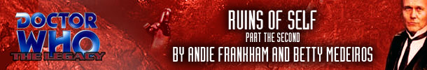 Well, Ruins of Self is a game of two parts, Part I and, er... Part II. Except it’s not. Despite what the promotion and design insist, Ruins… is/are two separate stories. The title proclaims them to be about the characters as much as the plot, which is certainly true of the first part, but not at all about the second part - notwithstanding some moping by Nick, only the final chapter delivers what the Ruins I promised. Neither do the plots continue; in all respects these are two discrete adventures. And they’re both enjoyable. I liked the first half on a purely character-based revelatory level, the second on an intriguing experiment into swapping Doctors level. Reading the two together is no more necessary than any other two stories of the season, it just happens that they both conclude or develop some major plotlines.