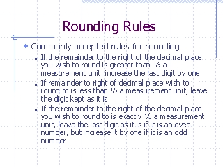 - Suppose wish to round to two decimal places. In this case the unit of measurement is one-hundredth, or .01, and one-half a measurement unit is .01/2 or .005. Thus, according to this rule, 5.338 is rounded to 5.34 because .008 is greater than .005. The quantity 5.335001 is also rounded to 5.34 because .005001 is greater than .005.