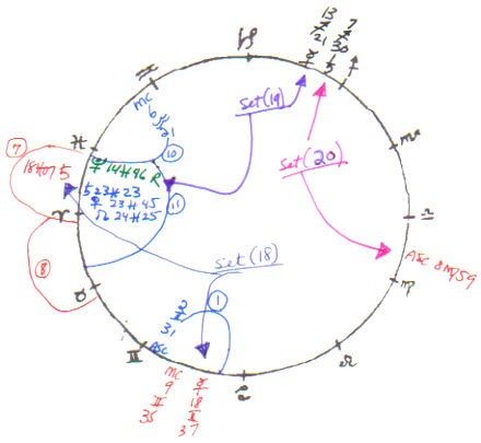 This method is not the traditional Western one. It uses a birth and conception planets and their harmonics and houses, all of which share the same axis. Here are some of its empirically-derived operating principles: