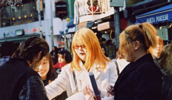 Wow, Mama! Check her out. Does this women in White match your image of subservient Japanese women? Probably not. I'm sure you're saying to yourself, "What's so special about this girl, she'd be 'Normal' In America." Well, this is Japan and this type of style and way of thinking has Japanese parents teachers in an uproar. |