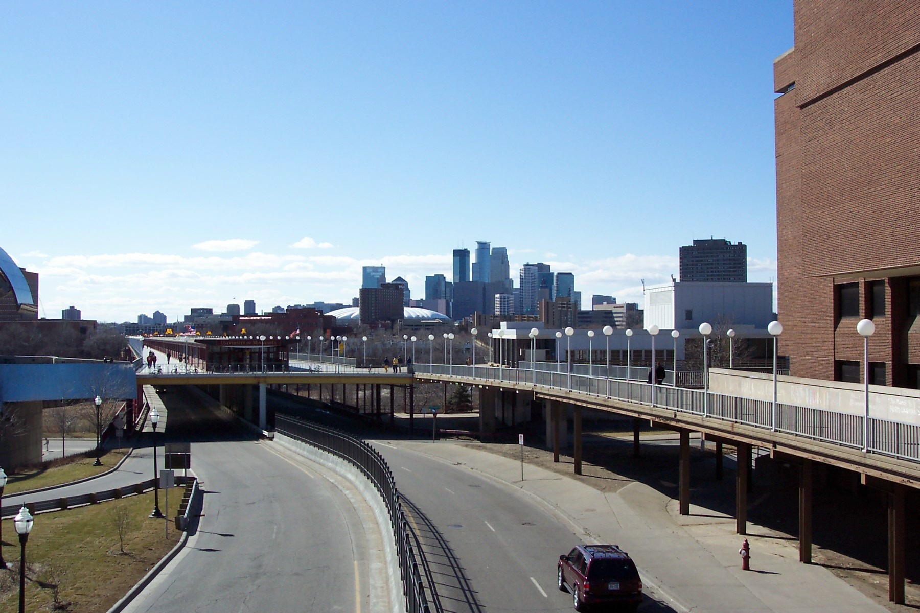 ![]() Downtown Minneapolis There are some great views of downtown from the Minneapolis campus. On the right is Kolthoff Hall. |