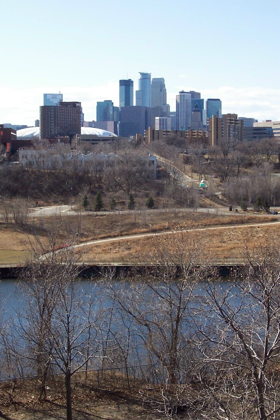 ![]() Downtown Closer view of Downtown Minneapolis, on the banks of the Mississippi River. Things weren't very green when I took these pictures at the end of March. But the river is always green. ;) In front of downtown, on the left, is the MetroDome, where the Gophers play football and baseball, and where the Twins and Vikings play. |